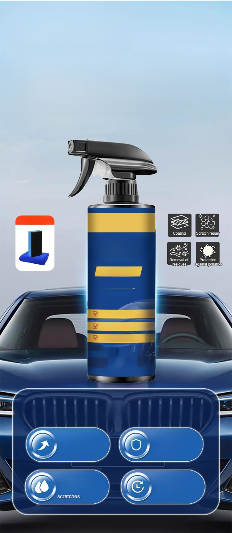 🚗 Nano-coating solution provides long-lasting protection for the entire vehicle. 🧰 Professional scratch repair, 3 months of lasting shine like new. Water and dirt repellent, easy to clean. ♻️ Quick application, saves time. No professional tools required, easy to use. 🥳 Leaves no residue for three years,Quick application, saves time. 50% off - today only.